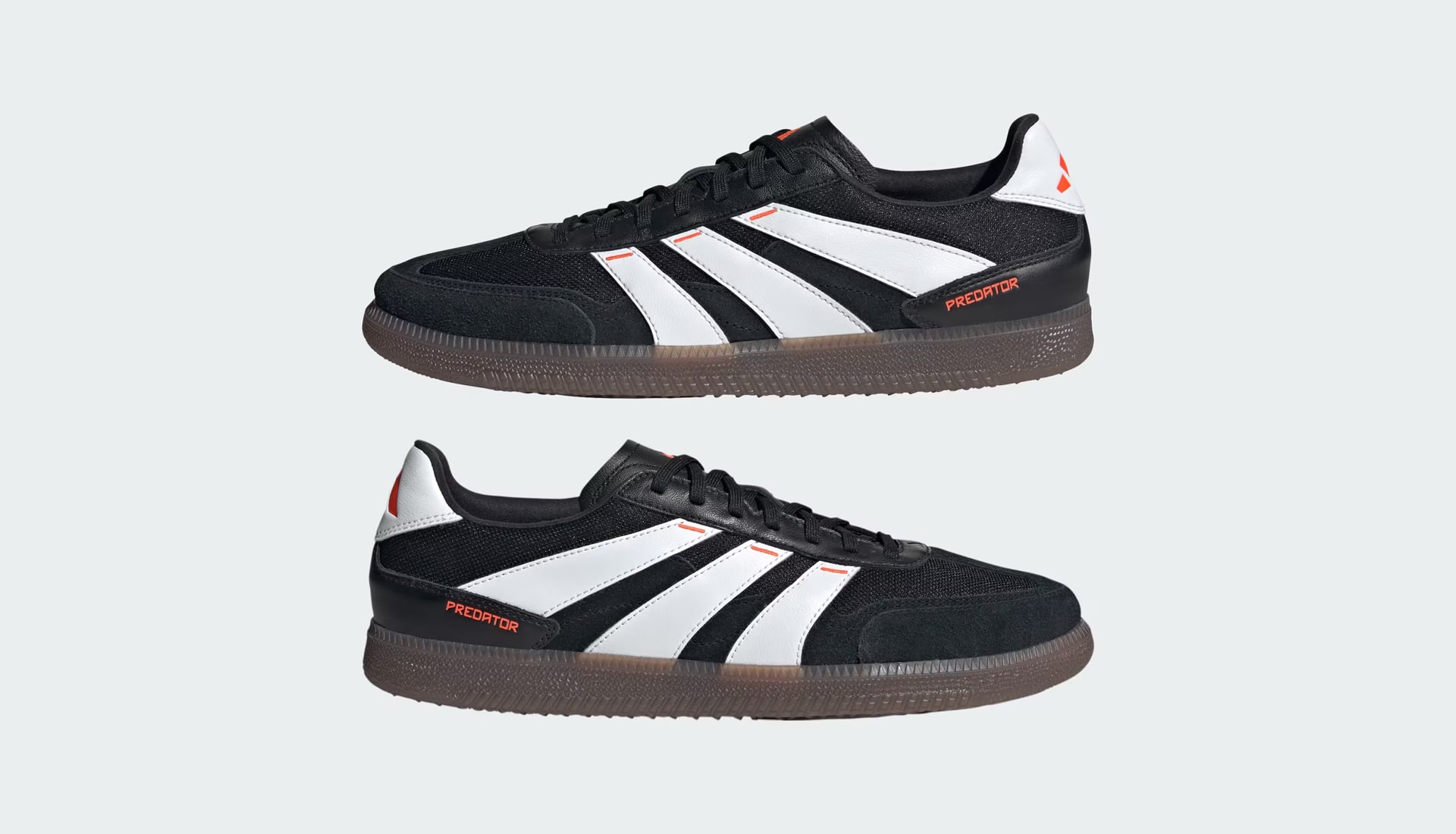 That Samba appeal is thanks mostly to that gum rubber outsole, while the Predator Freestyle sees the Three Stripes branding lifted straight off of the Predator 24 – themselves an homage to the iconic Three Stripes from the Accelerator. Presented in white, they sit on the black upper with minimal pops of the “Solar Red” from the boot featuring throughout, together combining for a classic Predator presentation. They share the same comfortable suede and mesh upper as the specialist indoor court Predators, but are not so obviously designed with performance in mind.