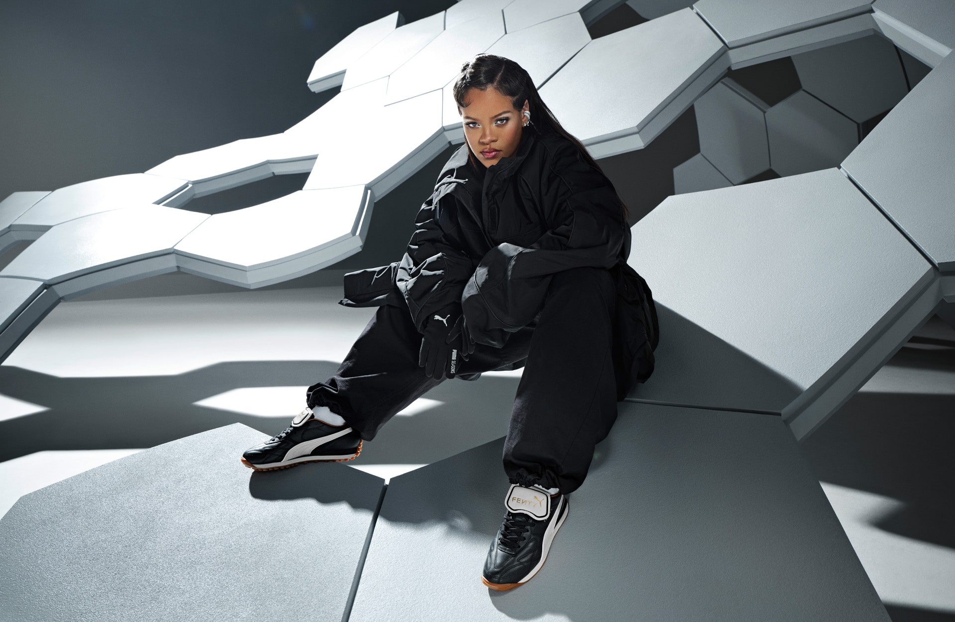 As Creative Director, Rihanna’s first FENTY x PUMA campaign – shot by Dennis Leupold with a set design inspired by the pentagon shape and stitching on a football – features notable names including Rihanna, A$AP Nast, Pure and Felix Mallard.
