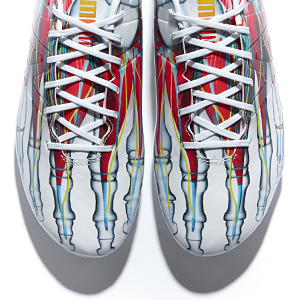 The FENTY x PUMA Avanti is a fashion take on the football trend with buttery soft vintage leather, a fold over tongue with a debossed and printed gold-foil FENTY and PUMA CAT logo. With a gum outsole and leather footbed, the details of the Avanti nod to PUMA’s deep history and heritage in the sport of football. The black and white version is complimented by a chrome execution with laser etched logos and leather chrome details.