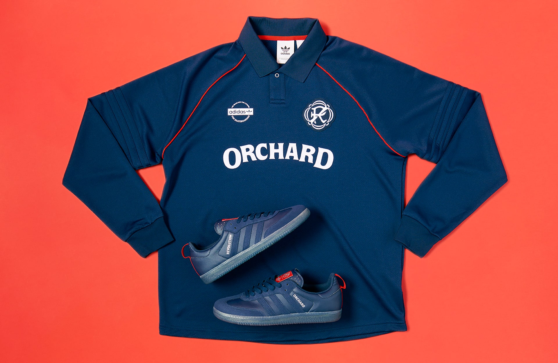 The adidas Skateboarding Orchard x New England Revolution Collection is available at revolutionsoccer.net and adidas.com/skateboarding.