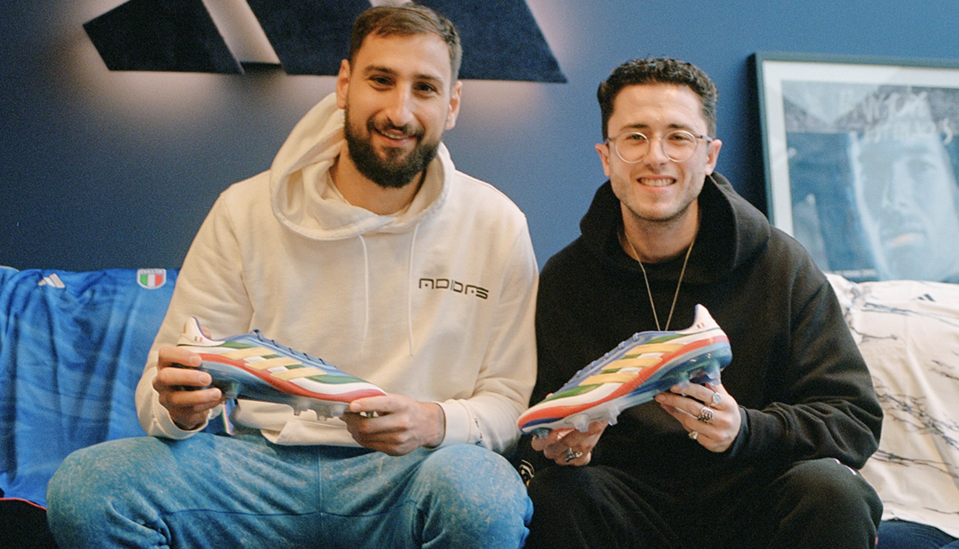 The boot and glove combo has been created in celebration of Italy’s Euro 2020 win (hey, better late than never!) and they were presented personally by Dawson to Donnarumma at adidas’ Paris Headquarters.
