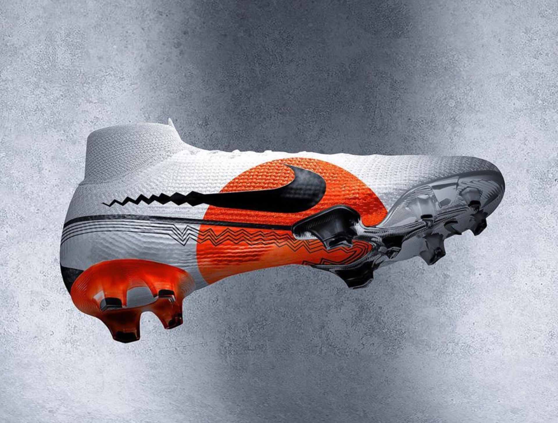 First up is the Mercurial Superfly VII in the style of the latest Nike Premier League 19/20 Tunnel Vision Merlin Ball. The specifics of the ball design have been carefully replicated onto the Superfly to make it look like something that would appear in one of Virgil Abloh's dreams, and we're all for that.