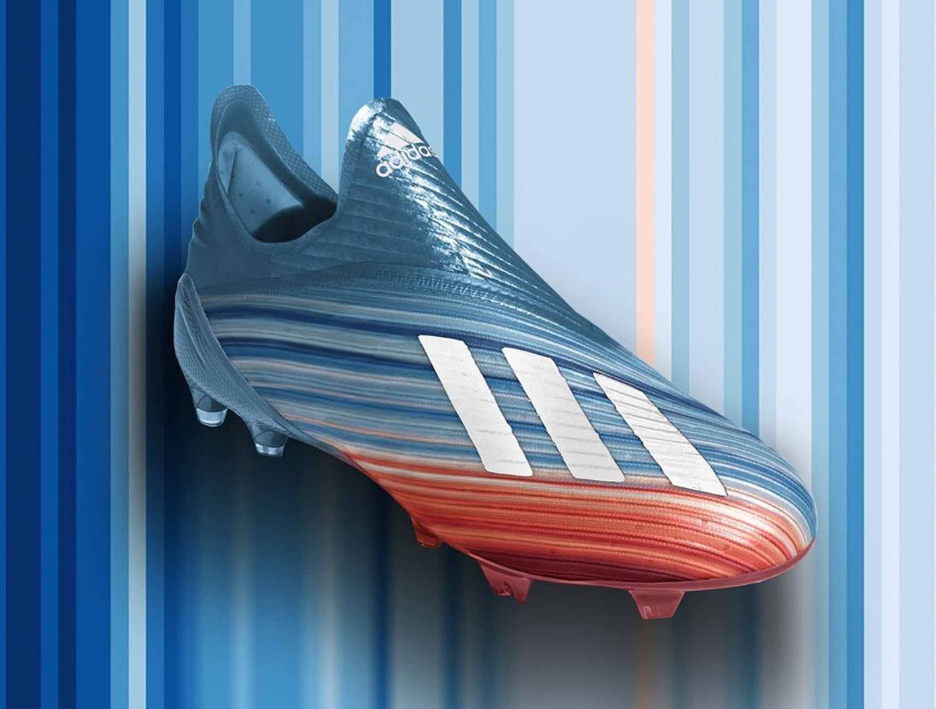 Next up is an adidas X 19+ concept based on the #showyourlaces campaign. These ‘warming stripe’ graphics are visual representations of the change in temperature as measured over the past 100+ years. Each stripe represents the temperature averaged over a year. Showing brands how they can effect change and spread positive message while remaining relevant aesthetically.