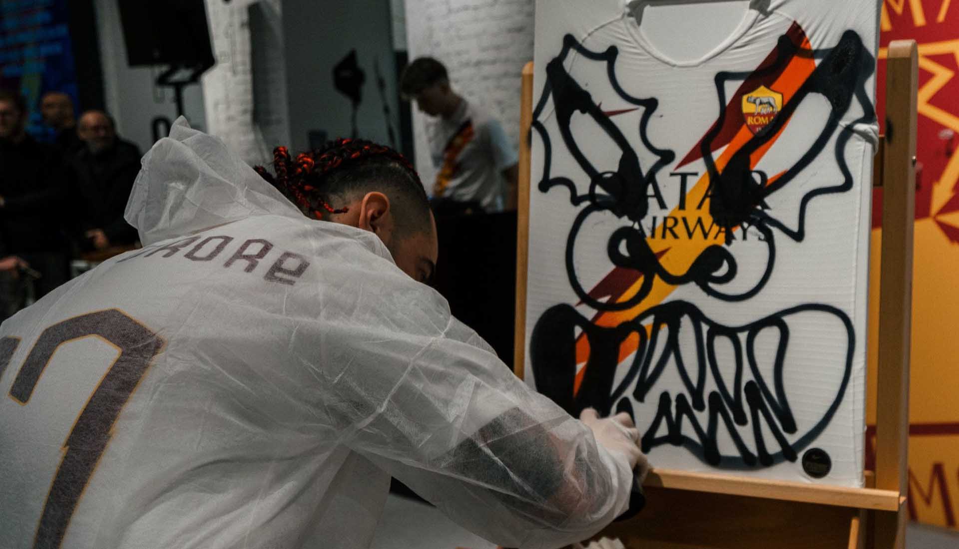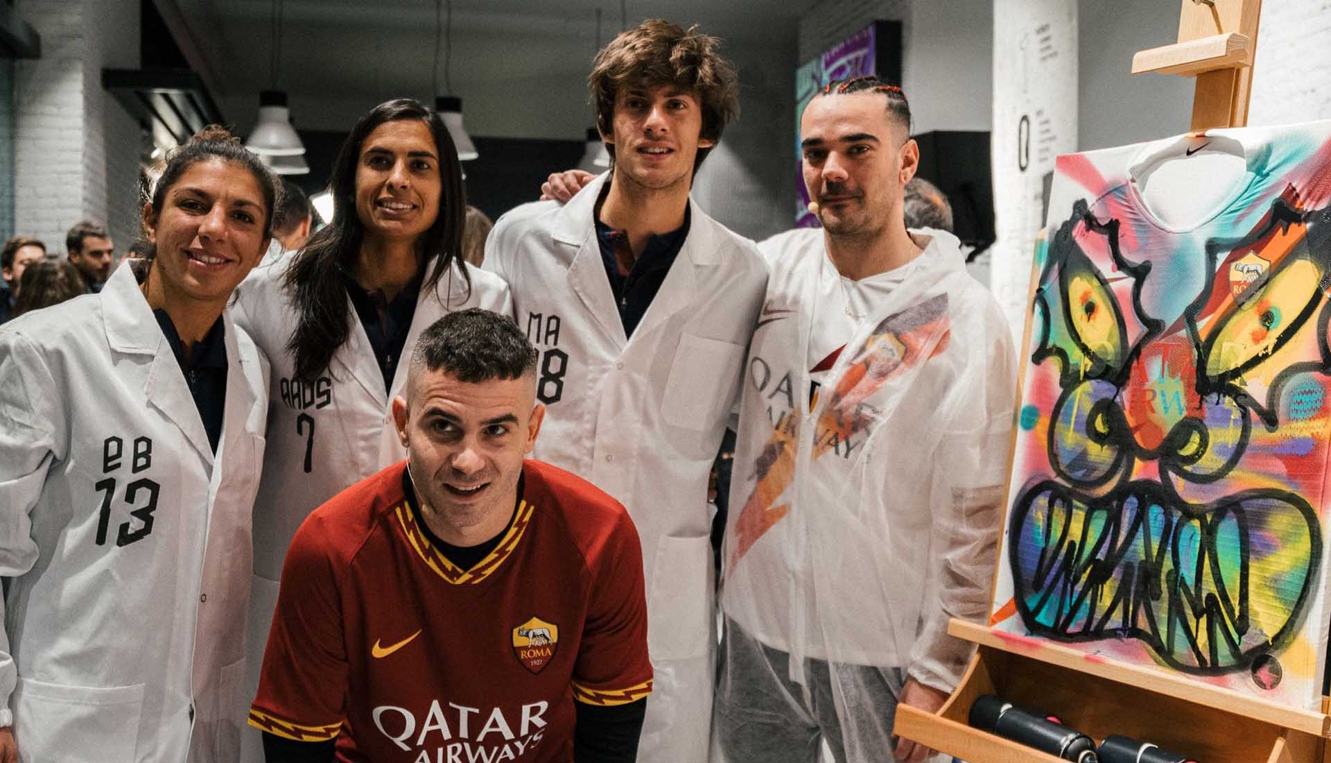For the 2019/20 season, Nike created three outstanding kits for AS Roma that look as striking off the pitch as they do on it. And the Swoosh decided to take the appeal for the shirt one step further, inviting three artists and several players along to a special event to rework the shirts.