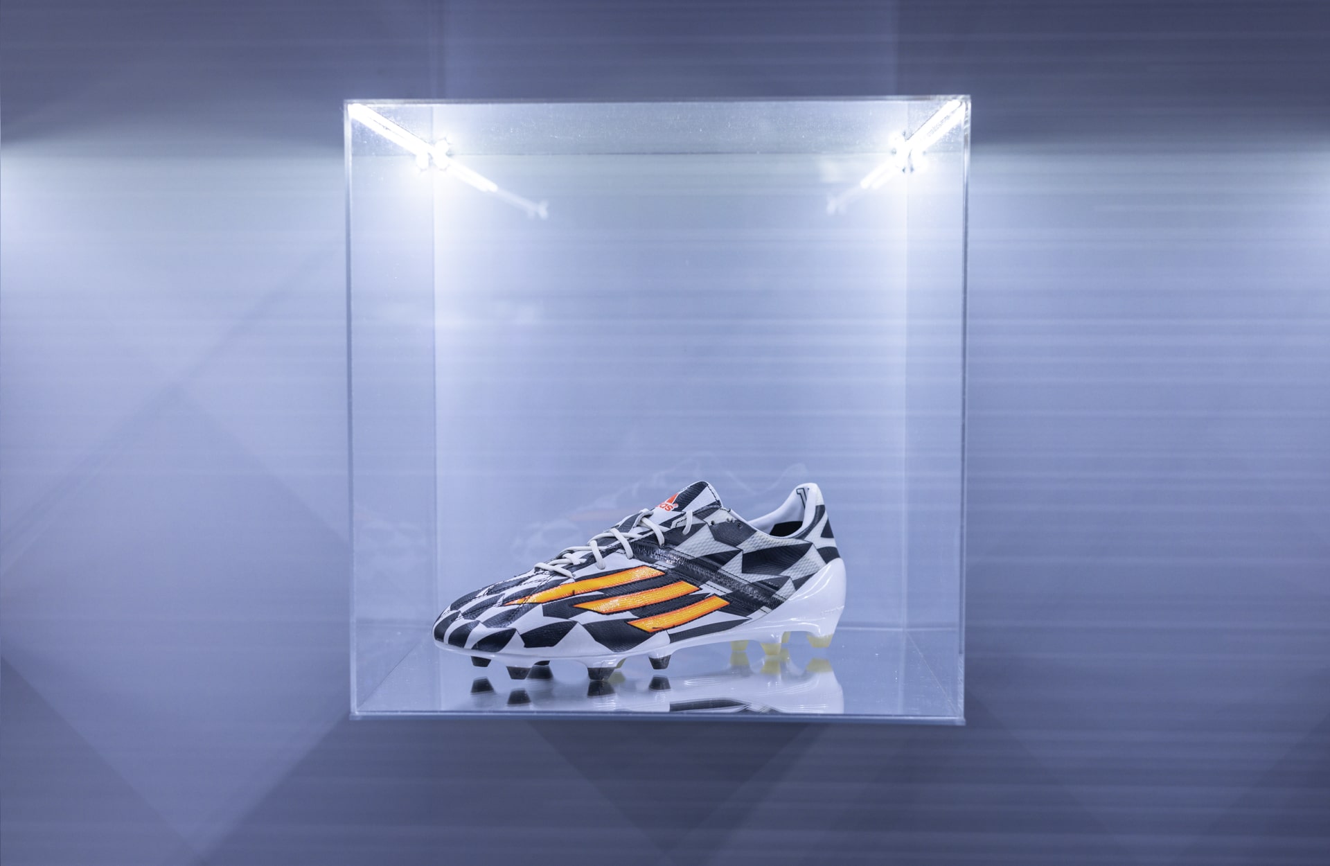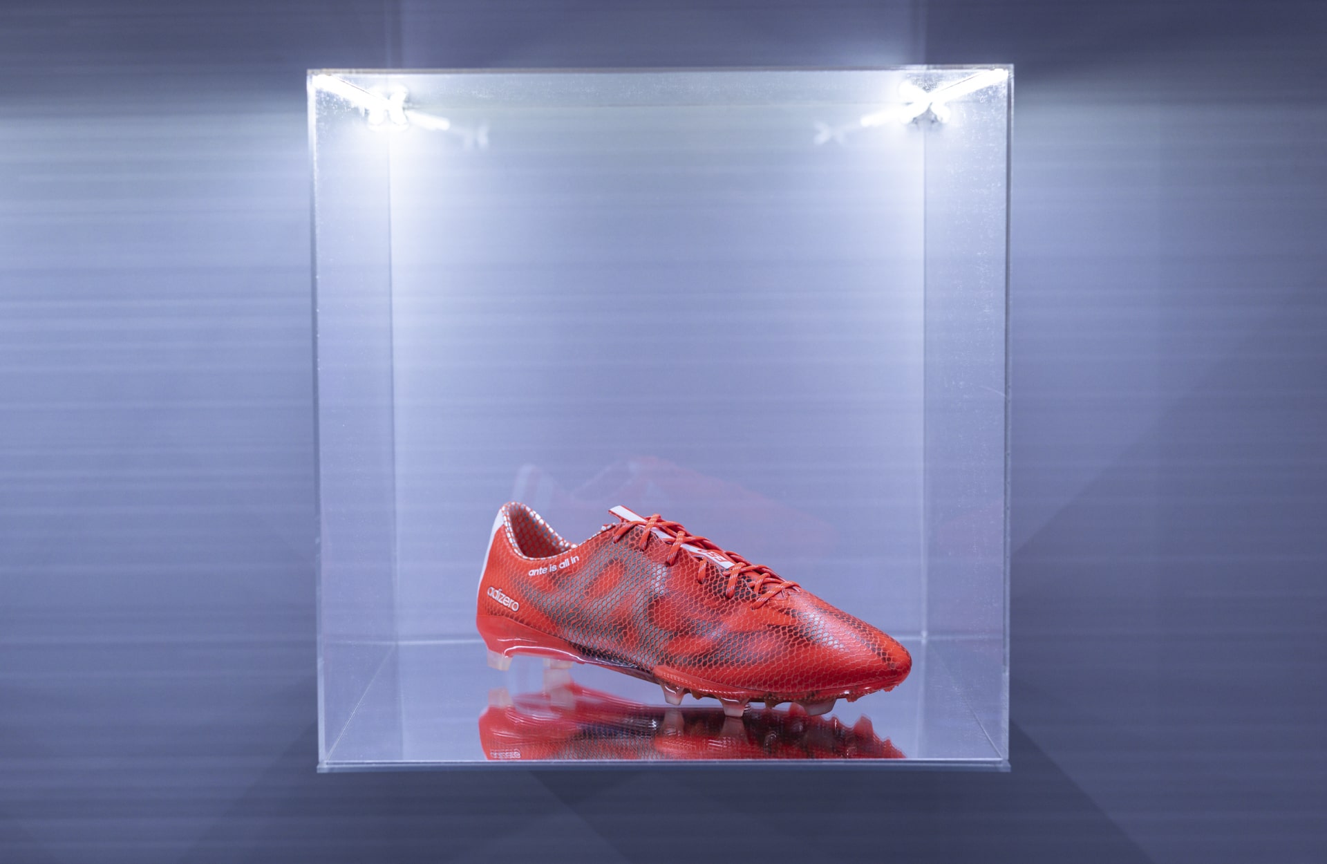 How do you welcome back a friend that’s been missing for the last 10 years? To start with, you throw them a huge party celebrating their return, and that’s just what adidas did for the F50 recently. Thankfully, our invite did not get lost in the post, meaning we were on hand to take in the two-day event, which started at Protein Studios in London. The venue had been taken over by adidas, who transformed the space into a homage to all things F50 – from the selection of premium archive picks to a specialised fitting station with top-of-the-range technology providing a 3-D map of your feet. The space was a-buzz with excitement at what was to come, as the 150 or so guests arrived, lapping up all that adidas had to offer on the F50. While the lights were set low, the anticipation was high.