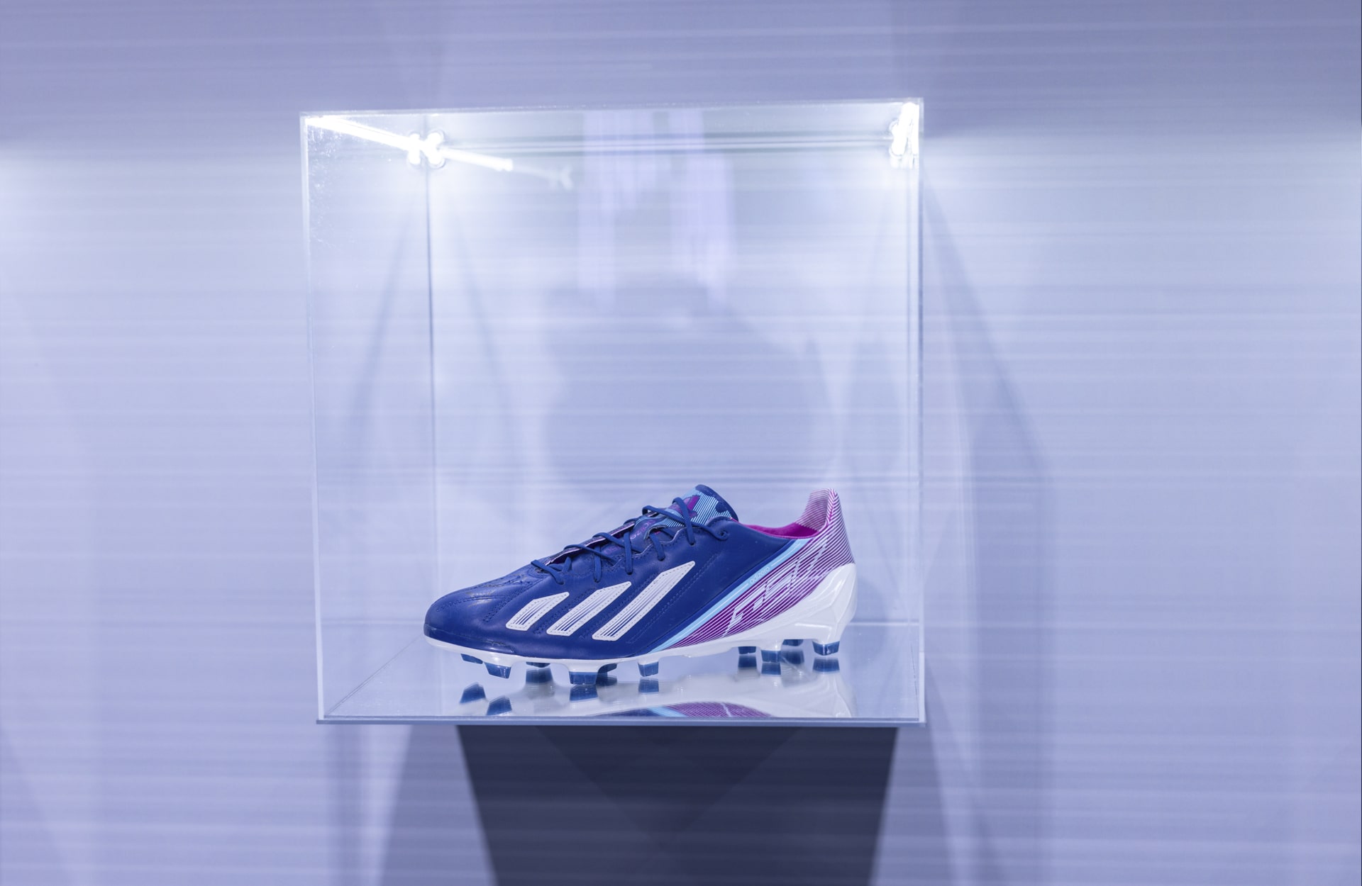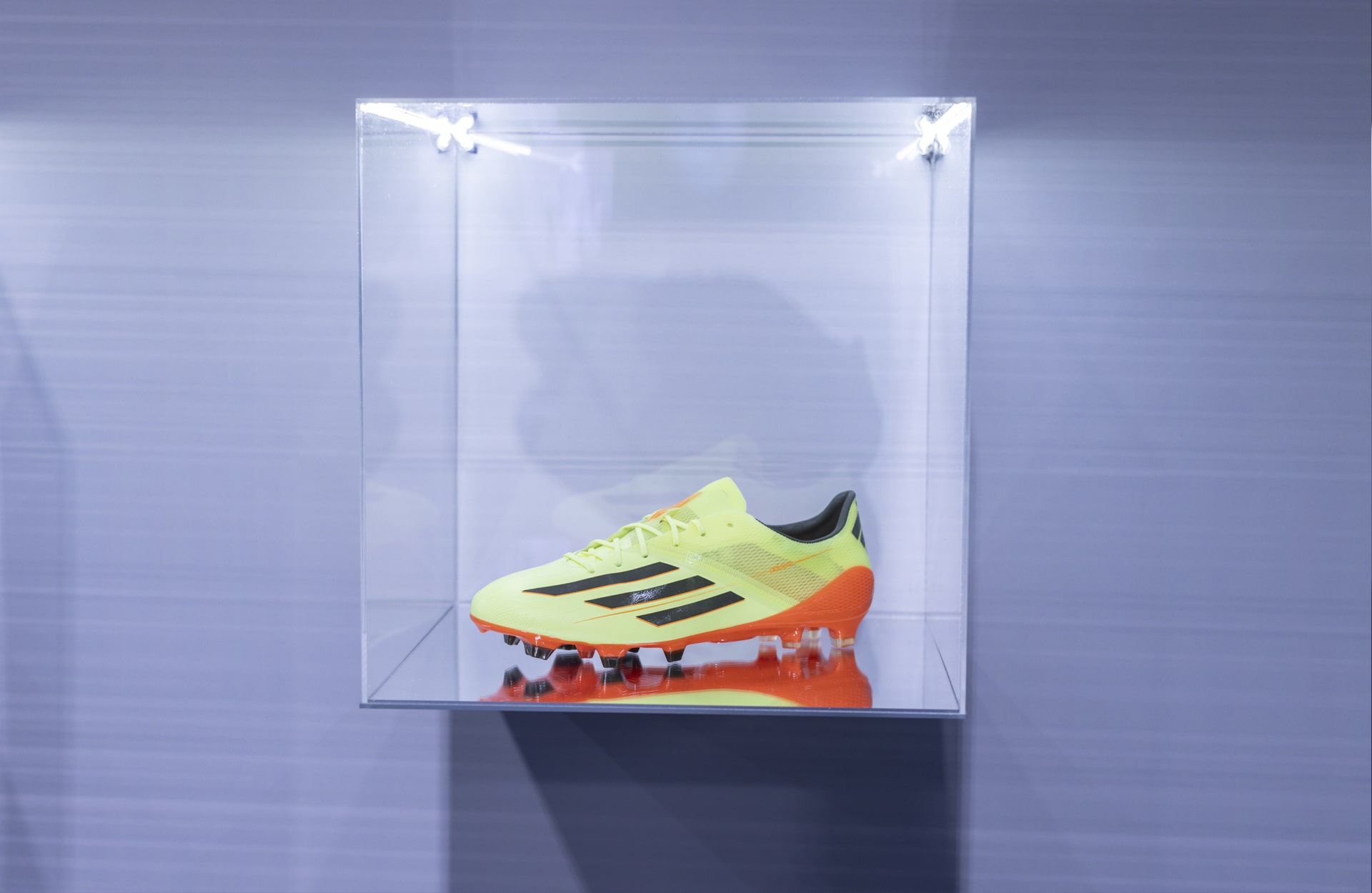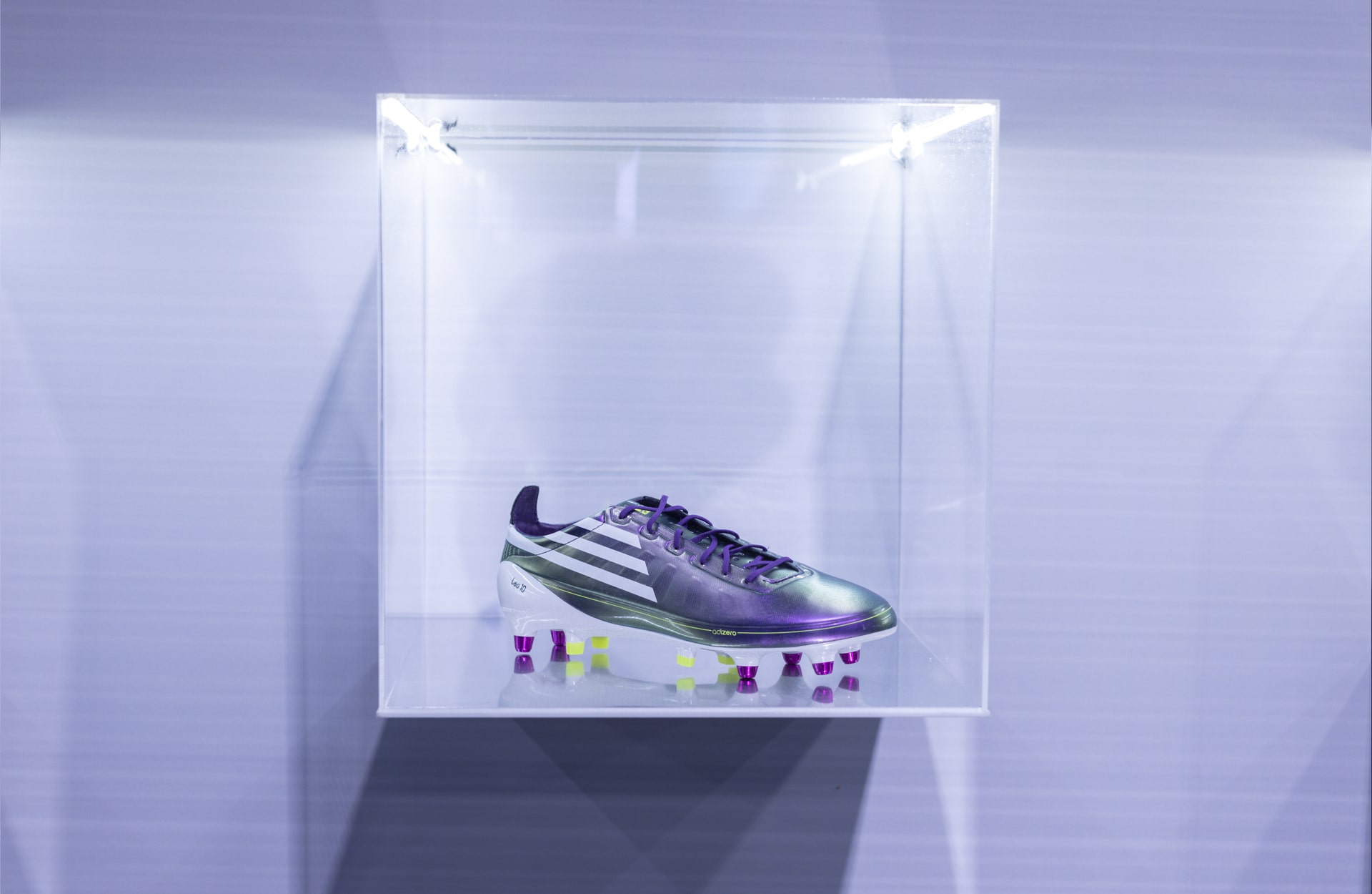 Within the immersive space that I was greeted with was an archive corner, taking in the full evolution of the F50, and that’s fittingly where I began my journey. For the event, adidas had transported 10 of the key releases from the F50 line’s history from within their archive at the brand’s HQ in Herzogenaurach, including the original F50 from 2004, the F50+ Tunit from 2006, and the revolutionary jump that was the F50 adizero from 2010. It was a journey from the past to the present, culminating in the latest ad for the return of the F50, featuring perennial F50 poster boy, Lionel Messi.
