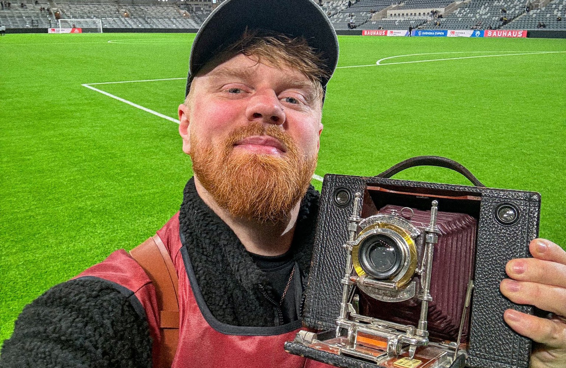 Myerscough-Harris recently posted on his Instagram account asking what he should shoot on a 100-year old reel of film. As sometimes happens in this world, the stars just so happened to align perfectly, with AIK releasing their new kit, itself celebrating 100 years of the Allsvenskan. And the folk at Pro:Direct Soccer were quick to make the connection, linking the two parties up for an iconic piece of content creation. Just so happened that Myerscough-Harris also had a collection of old cameras too and he was looking for a project to use one on. And it ended up being this 127 year old camera.