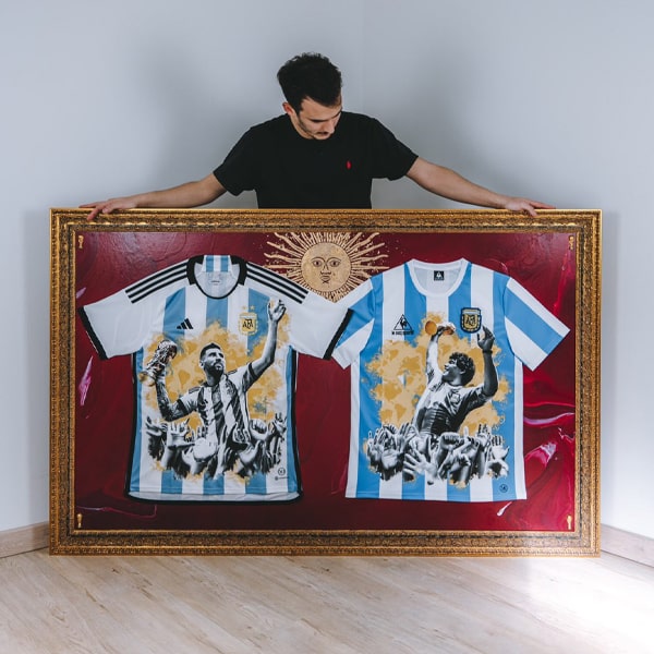Custom artist Mats Drawing has popped up on a radar in the past for his incredible creations, where he usually uses football shirts as his canvas, producing striking representations of some of the game’s greats, including a wonderful representation of Messi and Maradona recently. But for his latest creation he’s changed lanes, switching the football shirts out for a more traditional setup – albeit still with a unique twist.