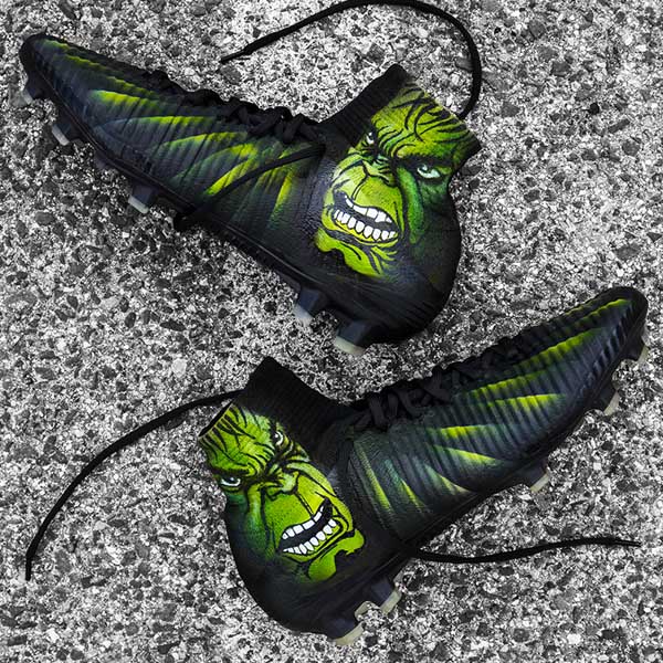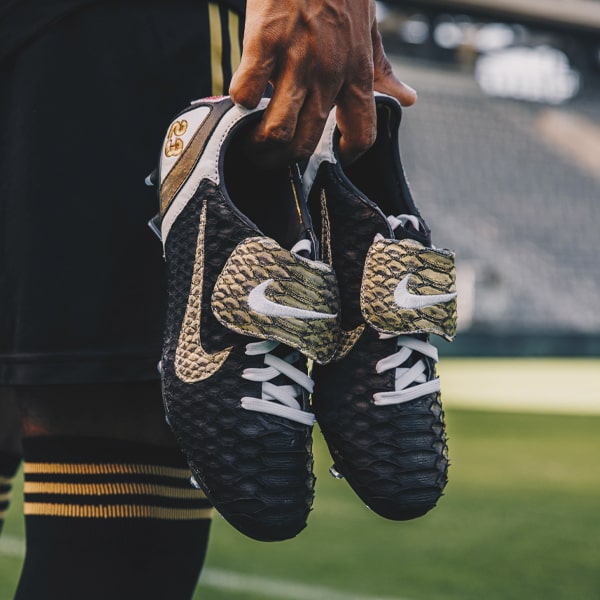 The boots that were reworked included a Nike Air Zoom T90 III, the Nike T90 Laser IV from the 2012 Clash Pack, the Nike Tiempo Legend III, and the Nike Speed TD American Football cleat. The Air Zoom T90 III gets the knee-high treatment, with the other three being turned into ‘Kitten Heels’. Imagine a toe punt from one of those bastards...