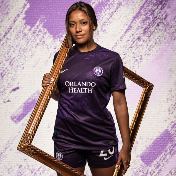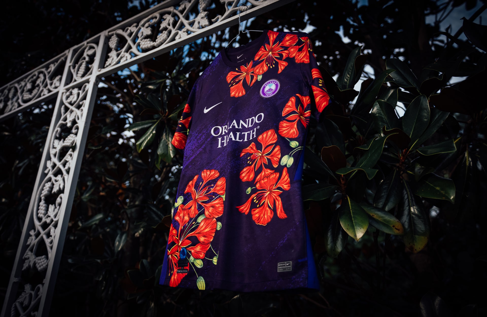 For the 2023 season, Orlando Pride unveiled the ‘Highway Woman Kit’, which was influenced by and paid tribute to one of Florida’s iconic female trailblazers in Mary Ann Carroll, a legendary Black artist. The deep purple jersey featured lighter tones of purple to represent brush strokes, but now that link to the artistic world has been elevated through a partnership with English artist and designer Christian Jeffery, who the club recruited to create a one-of-a-kind, hand-painted kit. The floral piece connects the Club to the local art community, a fabric of Orlando’s soccer identity, and further celebrates Carroll’s groundbreaking work.