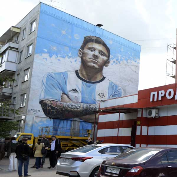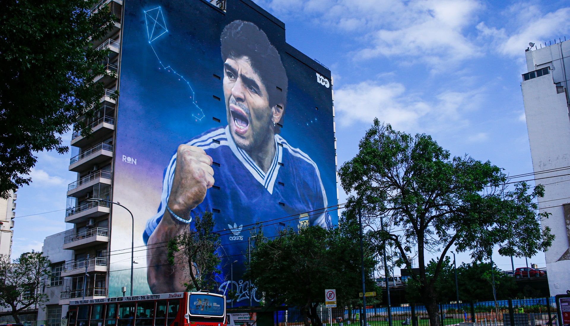The Messi mural is gigantic, occupying a wall 35 metres high by 20 metres wide. It took more than 200 litres if paint to complete, about 50 brushes and a lot of patience. It was first conceptualised a year ago, when the mural for Maradona’s 62nd was inaugurated, which also coincided with the commencement of the 2022 World Cup. “The [Maradona] mural was a success. Word spread all over the world, and we said that if Argentina eventually won [the 2022 tournament], we were going to portray Messi the following year,” Ron commented. Sure enough, one year on and we have the finished mural, sitting opposite Maradona. Pair of perfect 10s.