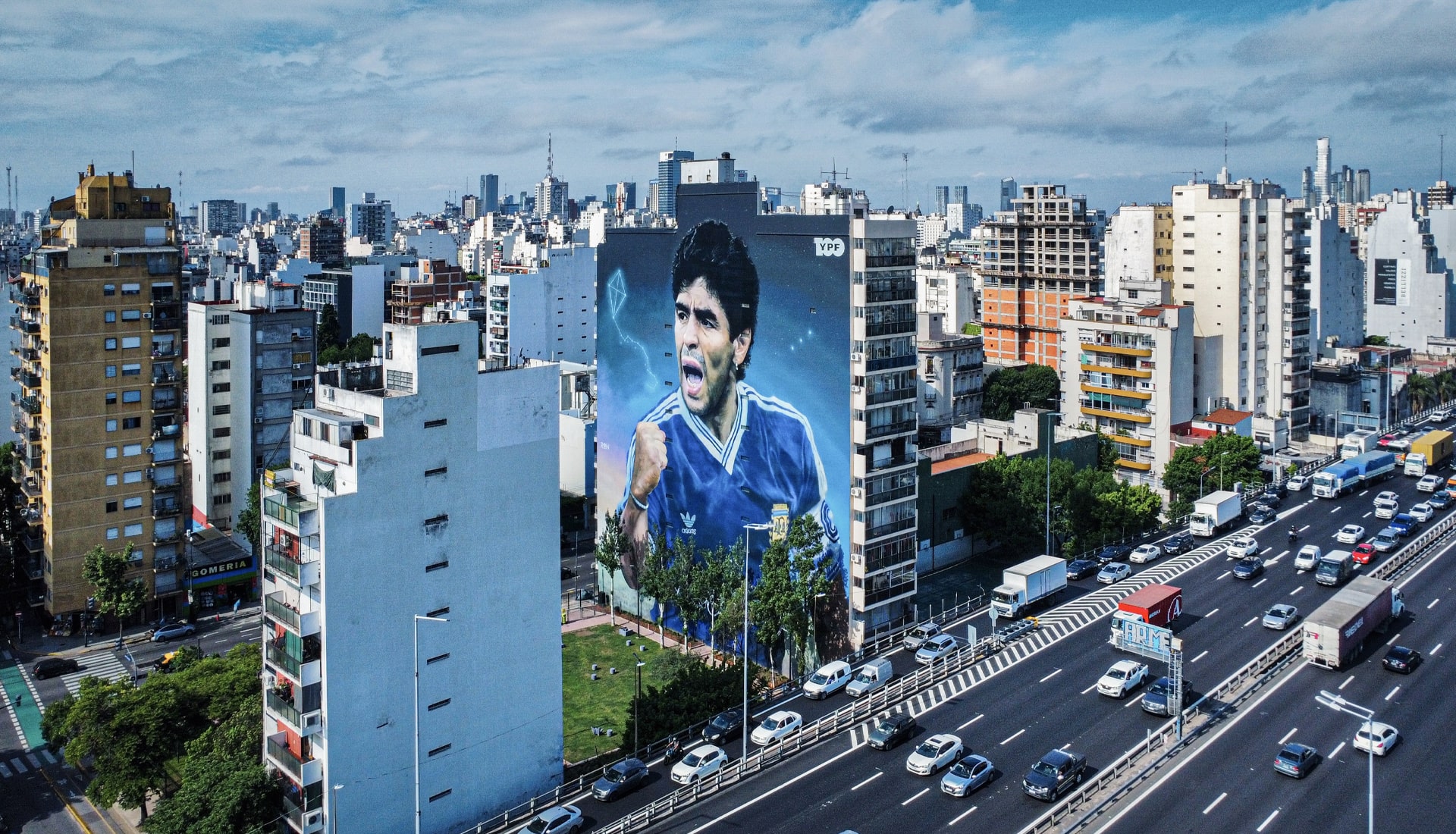 A year on from Argentina’s World Cup win, a giant Lionel Messi mural created by artist Martin Ron from his series of murals called the ‘Capitanes' has been officially completed and revealed, located on the corner of Avenida Belgrano and Avenida 9 de Julio in Buenos Aires, Argentina. Ron has created both Diego Maradona and Leonel Messi's murals to pay tribute to the two great footballers who led Argentina to victory at the 1986 and 2022 FIFA World Cup’s respectively.