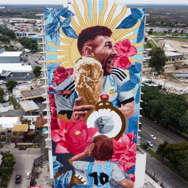 To commemorate the one year anniversary of Argentina’s World Cup win in Qatar, artist Martin Ron has produced a giant mural of Lionel Messi in Buenos Aires, located in the same district as another of his great works, that of Diego Maradona.