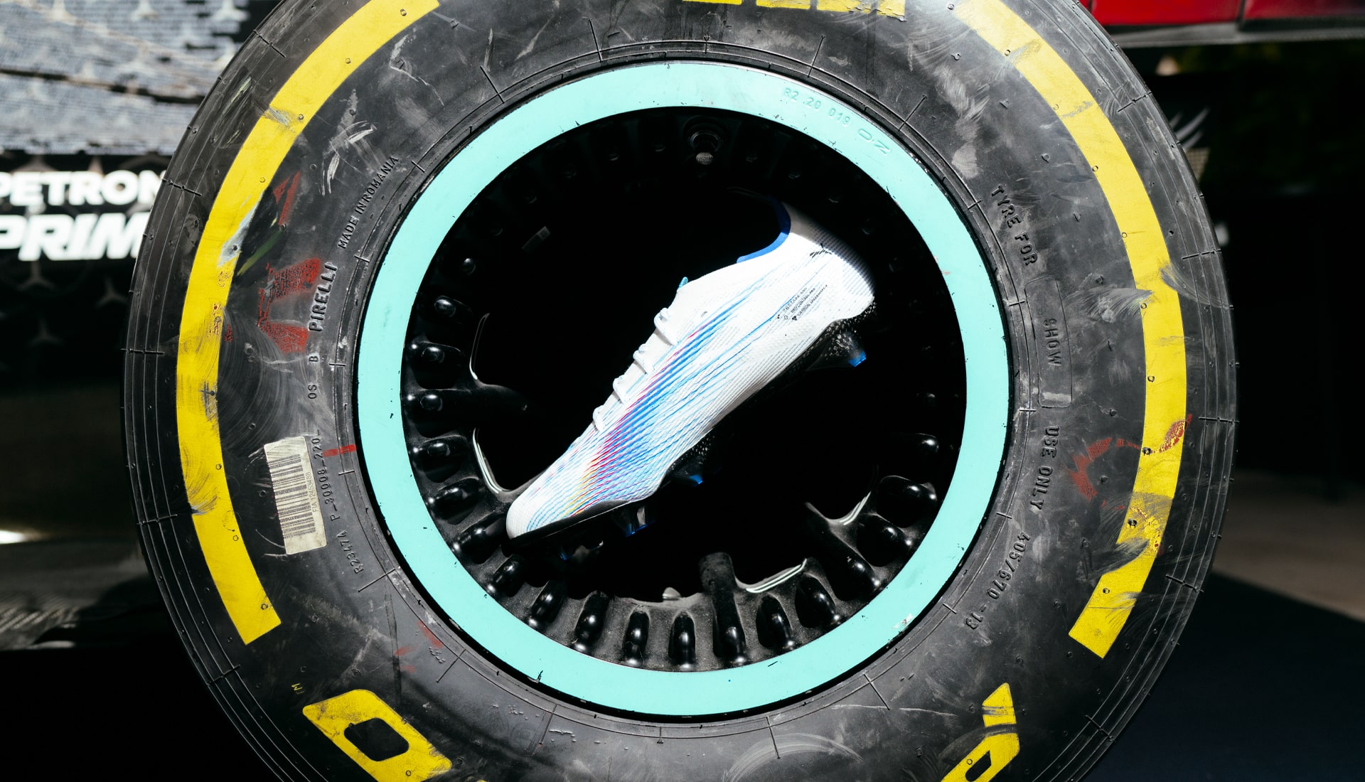 When you’re talking about speed, it’s all about fine margins. That’s why PUMA have turned to a carbon-fibre soleplate – the same material used on Mercedes F1 cars. It’s the toughest, lightest, most aerodynamic material available, and here it makes its triumphant return to football, having been seen before on boots in the past, before the pursuit was abandoned due to the sheer cost  of the material.