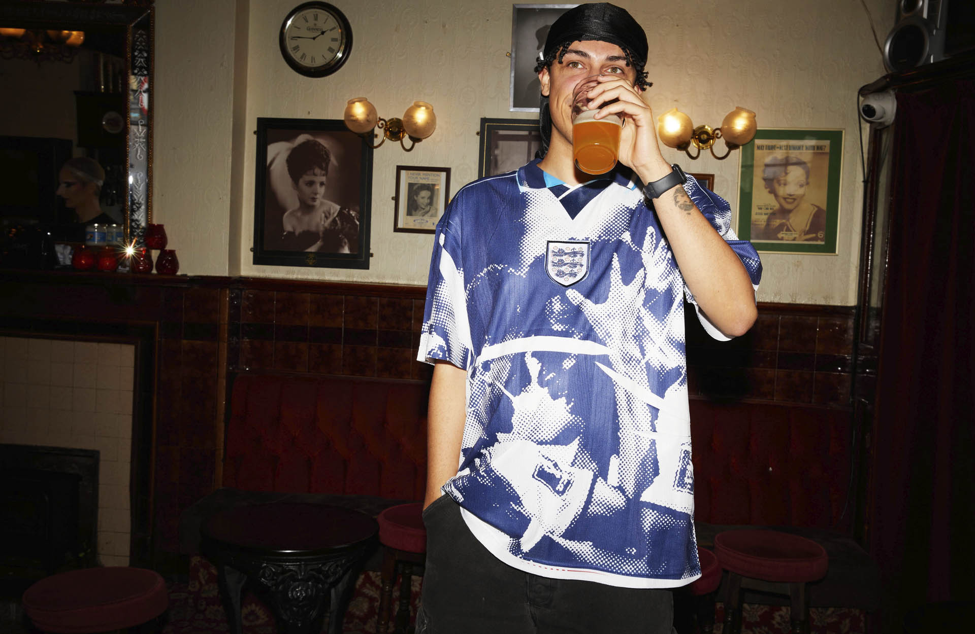 Using retro England shirts ahead of this summer’s Euro 2024 tournament, sourced through charity shops, wholesalers and vinted, Crowther has used sublimated prints of some of England’s outstanding black players from recent years, including Bukayo Saka after his crucial penalty was saved in the Euro 2020 final. The technique breathes new life into some retro home and away jerseys, while addressing an important and often overlooked aspect of fandom. Crowther has also stated that she will be donating 20 percent of each purchase to the Football Beyond Boarders Charity, supporting the vital work that they do.