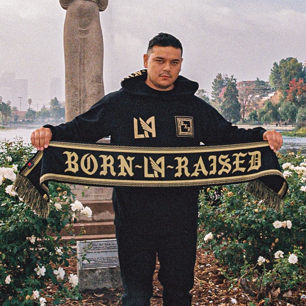The LAFC x PAISABOYS collection includes the Al Cien hoodie, Sueños t-shirt, LAFC x PB snapback hat and the Sueños double-sided scarf. Each piece was thoughtfully designed to represent the City and Club, with tags that resonate with the deep-rooted Latino influence that courses through both brands.