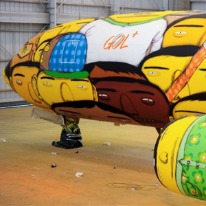 Brazilian graffiti artists Os Gêmeos commissioned to put their signature style on the Brazilian National Team plane to be used to travel from ground to ground.