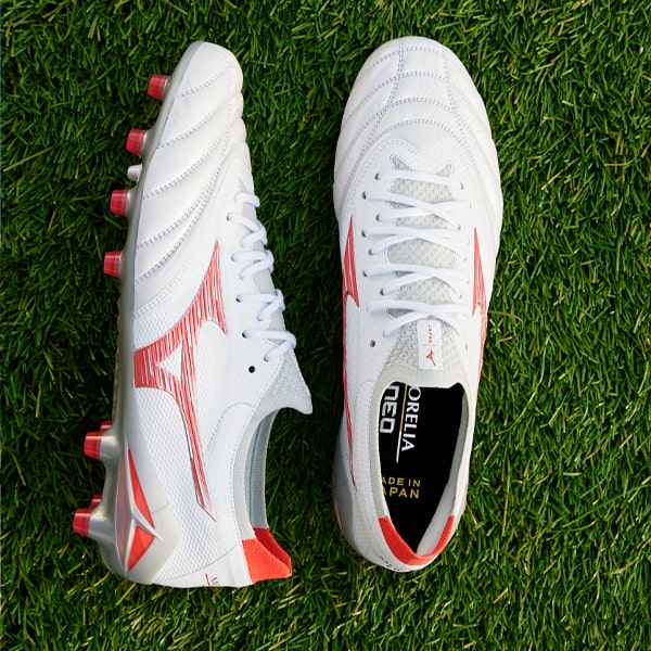 Lining up a crisp and clean finish, Mizuno drop the Morelia Neo IV β in a “White/Radiant Red/Hot Coral” colourway for what is a mini collection known as the ‘Charge Pack’.