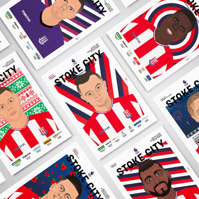 Continuing to embrace the creative opportunity through the medium of a match day programme, Stoke City worked with designer Adam Ward to create a series of vector based illustrations for their 2017/18 edition. Each player getting a spotlight on the cover, it's an example of where football meets art for the masses.