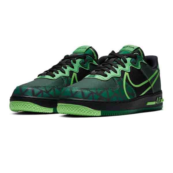 Continuing its premium treatment for the Super Eagles, Nike have unveiled a new look for the Air Force 1 React, wrapping it in those unmistakeable ‘Naija’ stylings of forest green, neon green and black.