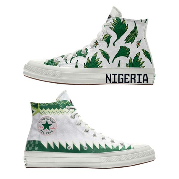 Nigeria can now count Converse amongst their collection of cool, with not one but two new ‘Naija’ designs for the Chuck 70 high top model being made available to customise through Converse By You.